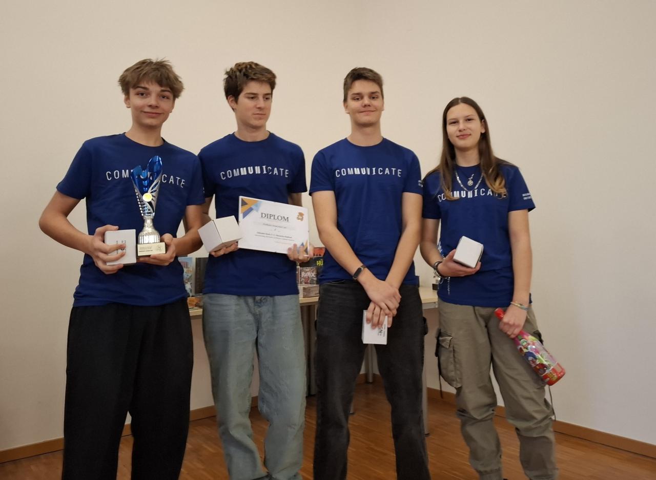 V silné konkurenci více než 2500 soutěžících se náš tým "Diddyho dospívající sen" žáků 9.C, jmenovitě Matyáš Knotig, Jan Kubát, Gabriela Marková a Jan Štastný umístil na 1. místě ze všech základních škol a na 3. místě ze všech základních škol a gymnázií v ČR. Za sebou nechali i věhlasné týmy pořadatelského gymnázia, pražského gymnázia Jana Keplera a mnoha dalších.