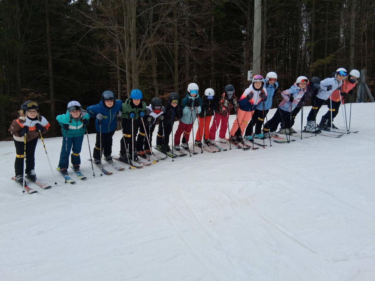 Hned po příjezdu a ubytování jsme vyrazili na svah. Místo tradičního číslování jsme letos žáky rozdělili do družstev podle barev – modré, zelené, červené a žluté. Tento systém spolu s novými barevnými páskami zajistil skvělou orientaci na sjezdovce a předešel zbytečnému srovnávání výkonů.