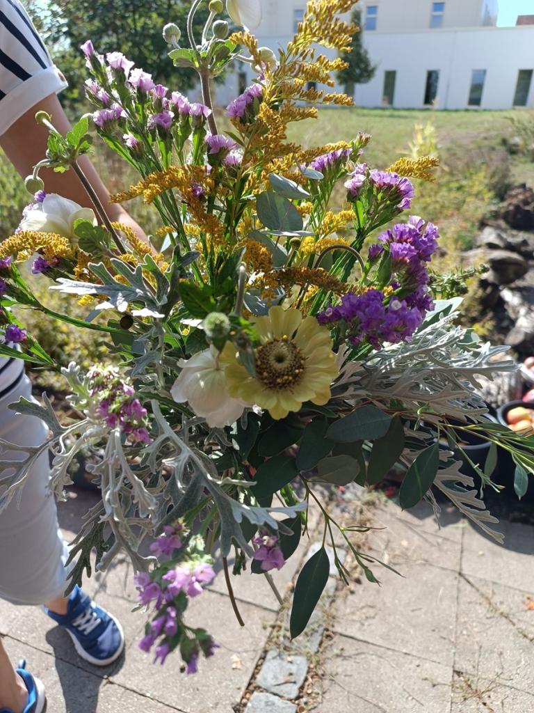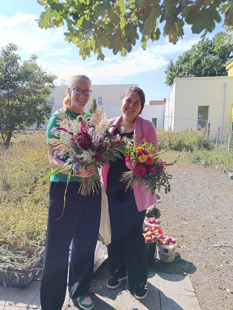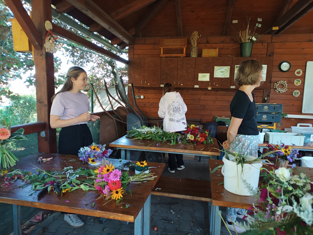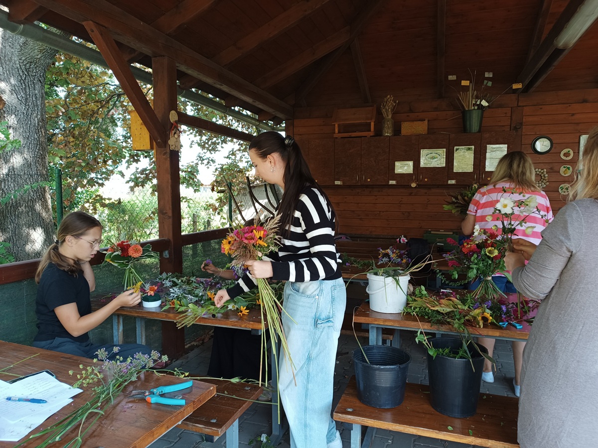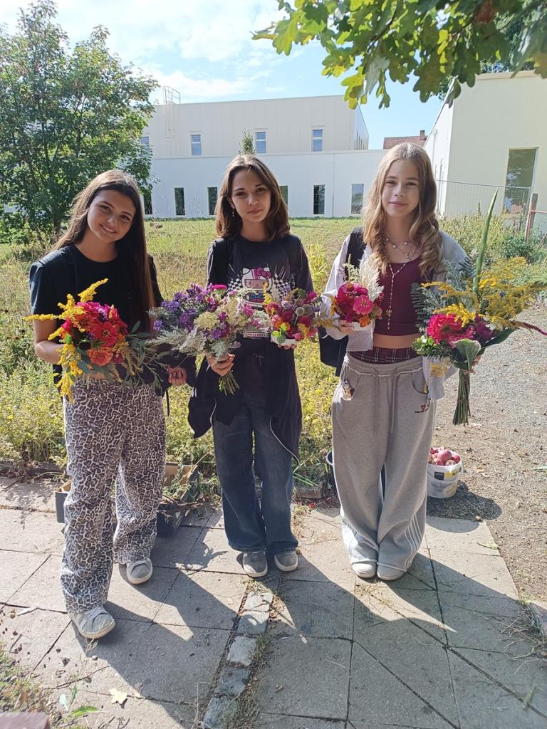 V pátek 12. 9. 2025 po vyučování se na školní zahradě konal kurz vázání květinové kytice a