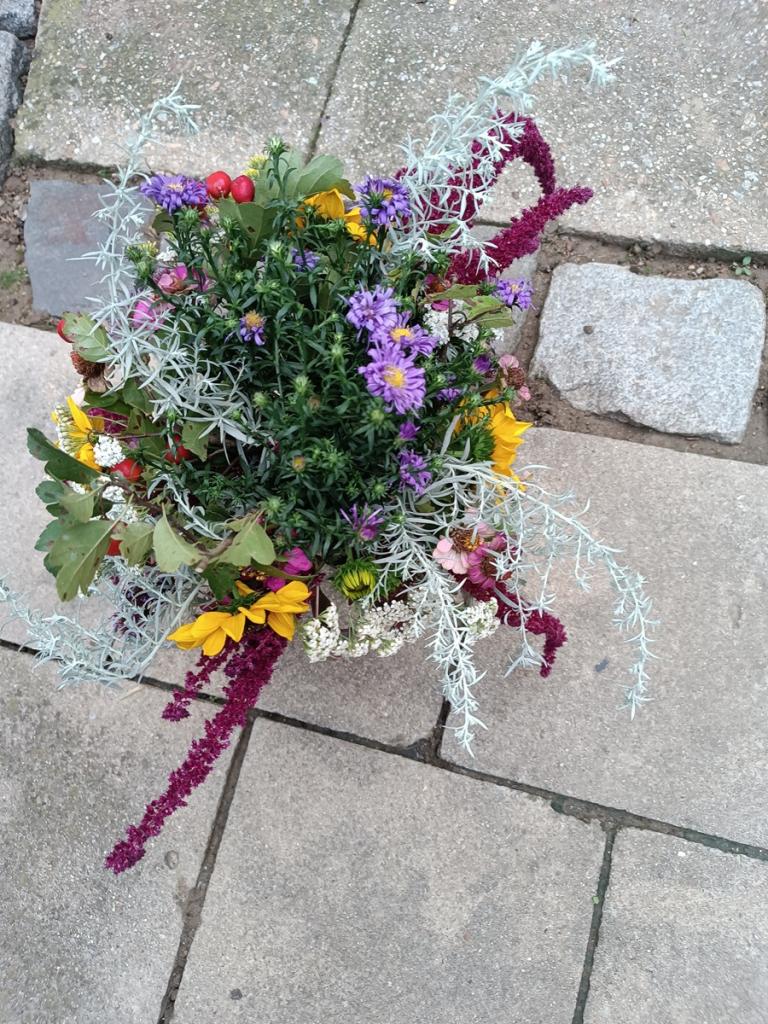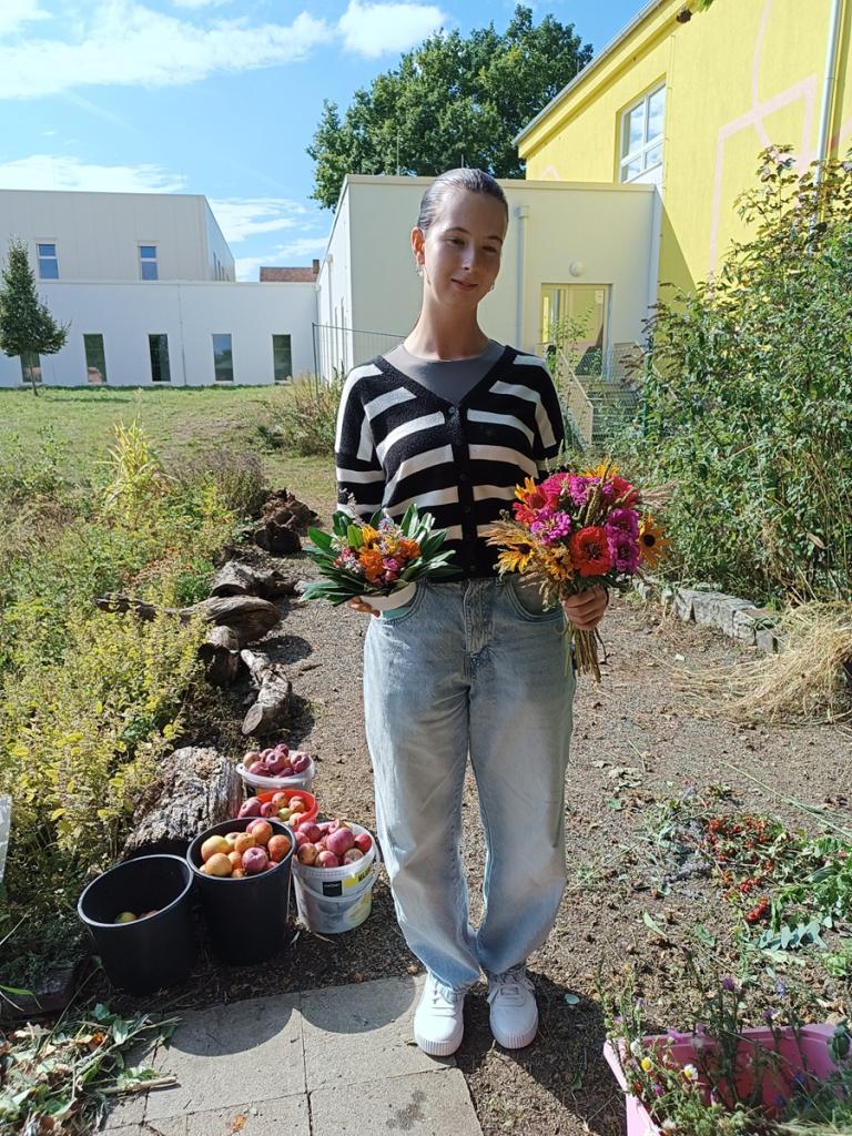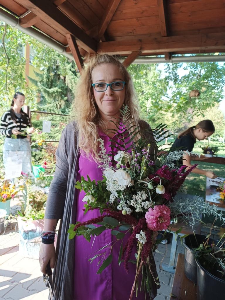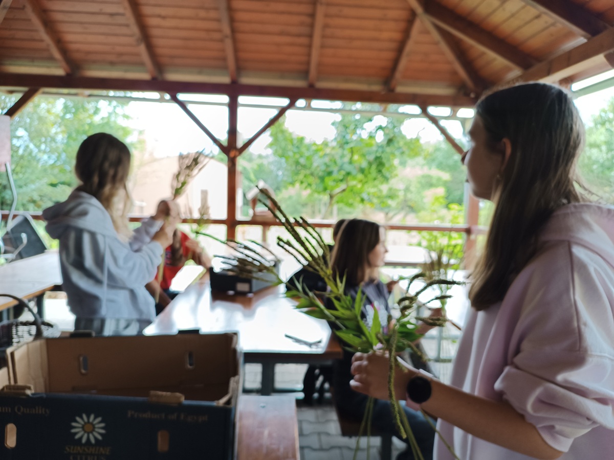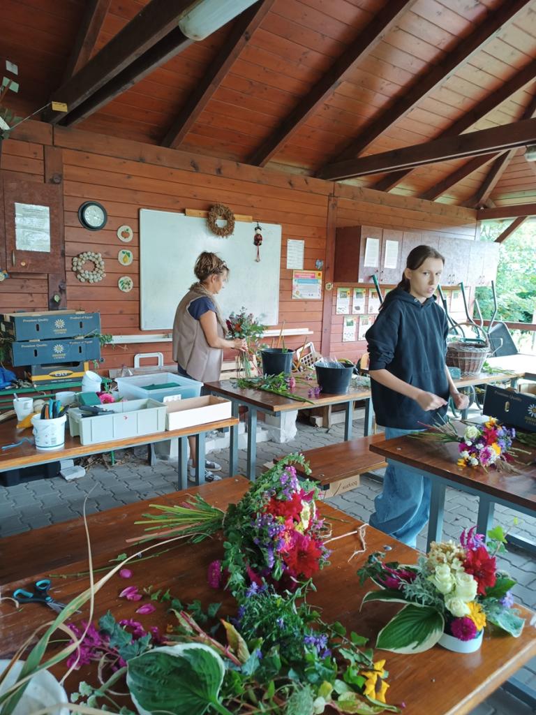 V pátek 12. 9. 2025 po vyučování se na školní zahradě konal kurz vázání květinové kytice a