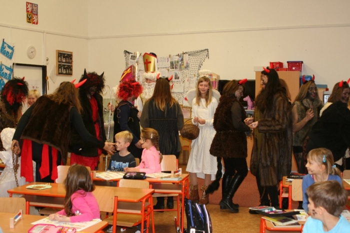 Děti 1.-3. tříd navštívili andílci, spolu s Mikulášem a rozvernými čertíky.