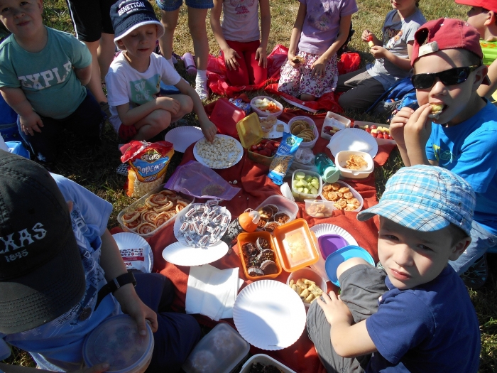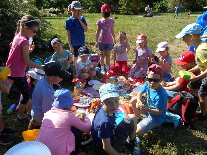 Děti si přinesly bohaté pohoštění. A také bohatě pojedly. Pak jsme se prošli okolo rybníka a výlet zakončili zmrzlinou. Počasí nám vyšlo, nálada byla skvělá, co víc si přát. Dana Suchánková, tř. učitelka