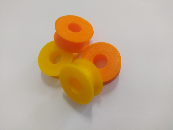 Výrobky však mohou být také pro výukové účely – takto jsme tiskli např. kladky do fyziky nebo DNA šroubovici do přírodopisu. 3D kroužek nás moc baví!