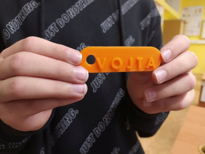 V kroužku 3D tiskáren jsme kreativní. Tiskneme na co jen přijdeme – jmenovky, držáky a stojánky, karabiny nebo i rybu.