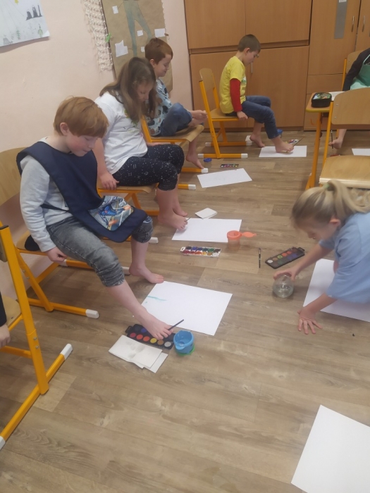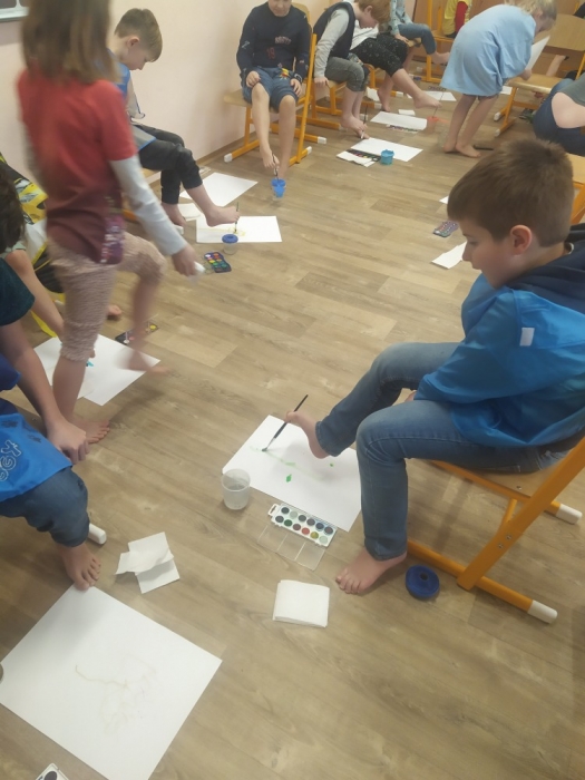 Dokázali jsme, že si umíme poradit i s tak citlivým tématem, jako je hendikep, a to dokonce ve výtvarné výchově. Žáci II.C zkusili ve výtvarné výchově malbu dolními končetinami.