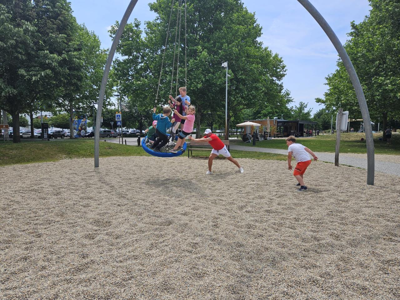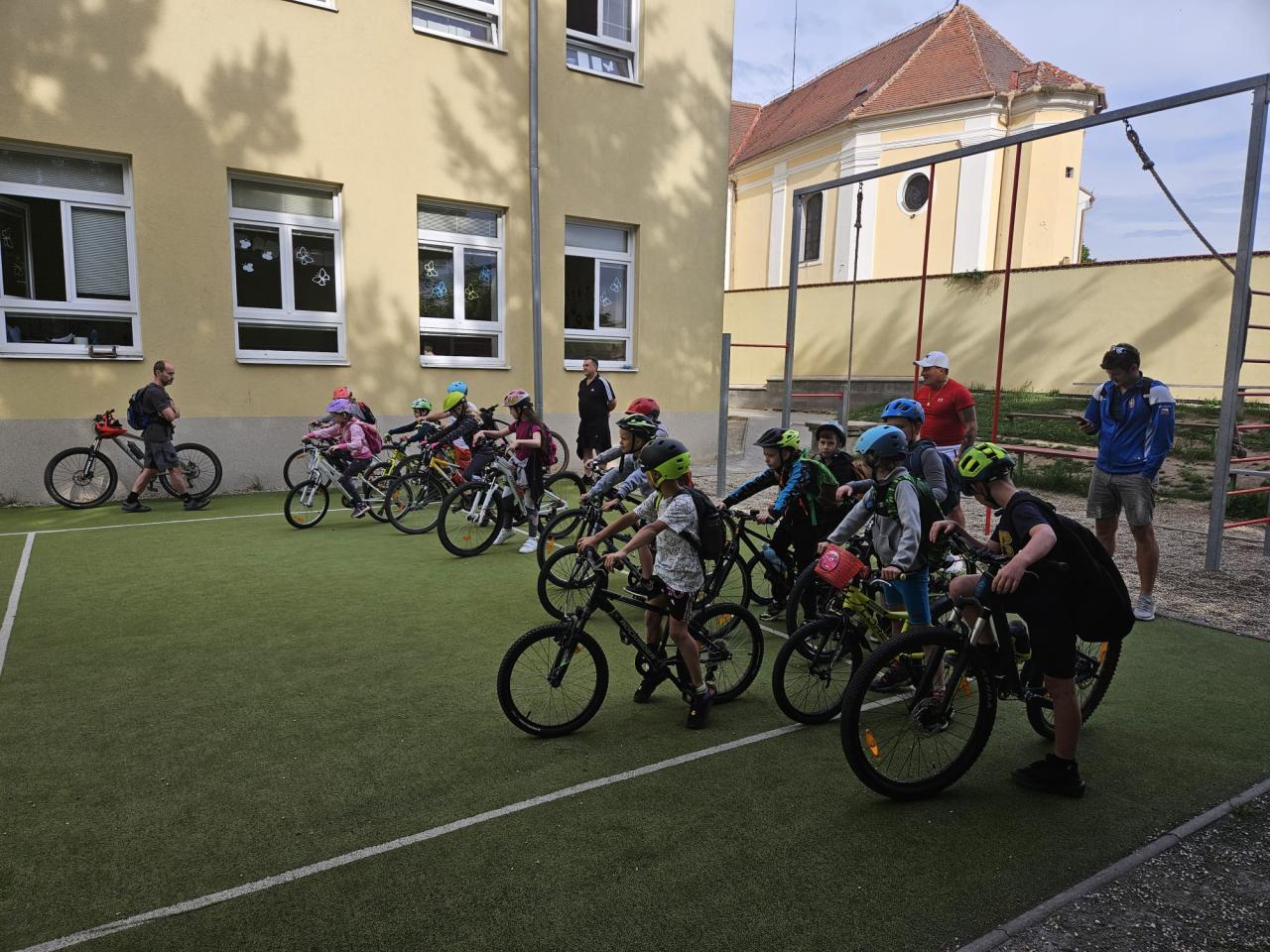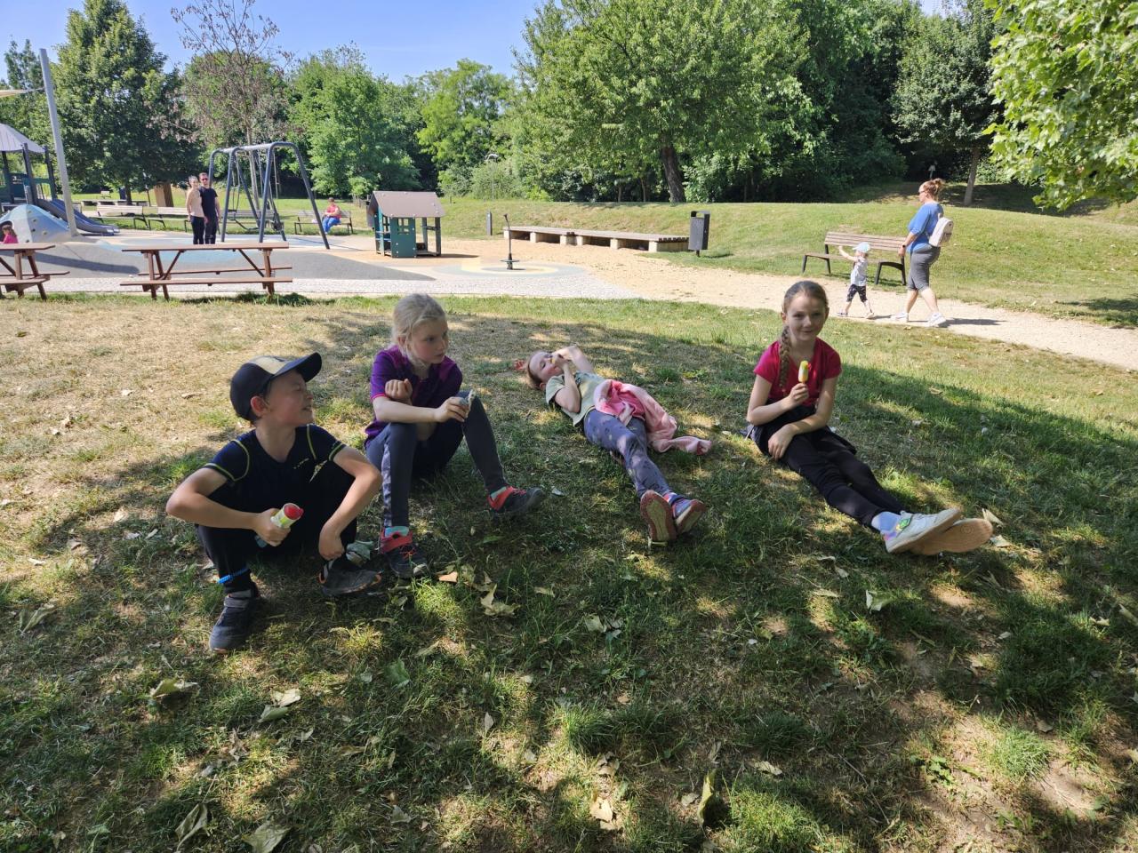 V pondělí 2. června jsme se rozhodli oslavit Den dětí výletem. A ne jen tak ledajakým! Rodiče doma nahustili kola, promazali řetězy a seřídili přehazovačky. Nasadili dětem helmy na hlavy a po řádném proškolení bezpečné jízdy jsme se společně vydali na kolech po cyklostezce do Olympie. Na velkém hřišti plném zábavných prvků jsme se dostatečně vyřádili, dokonce i vodou osvěžili :-) Posilněni párky, zmrzlinou a jinými dobrůtkami jsme se vydali na cestu zpět. Ukázalo se, že ve třídě máme mnoho nadšených cyklistů, kteří udržovali tempo tak vysoké, až jim ani mnohý dospělý nestačil :-). S větrem v zádech a úsměvem na tvářích jsme všichni bez jakéhokoliv karambolu doputovali zpátky do školy.