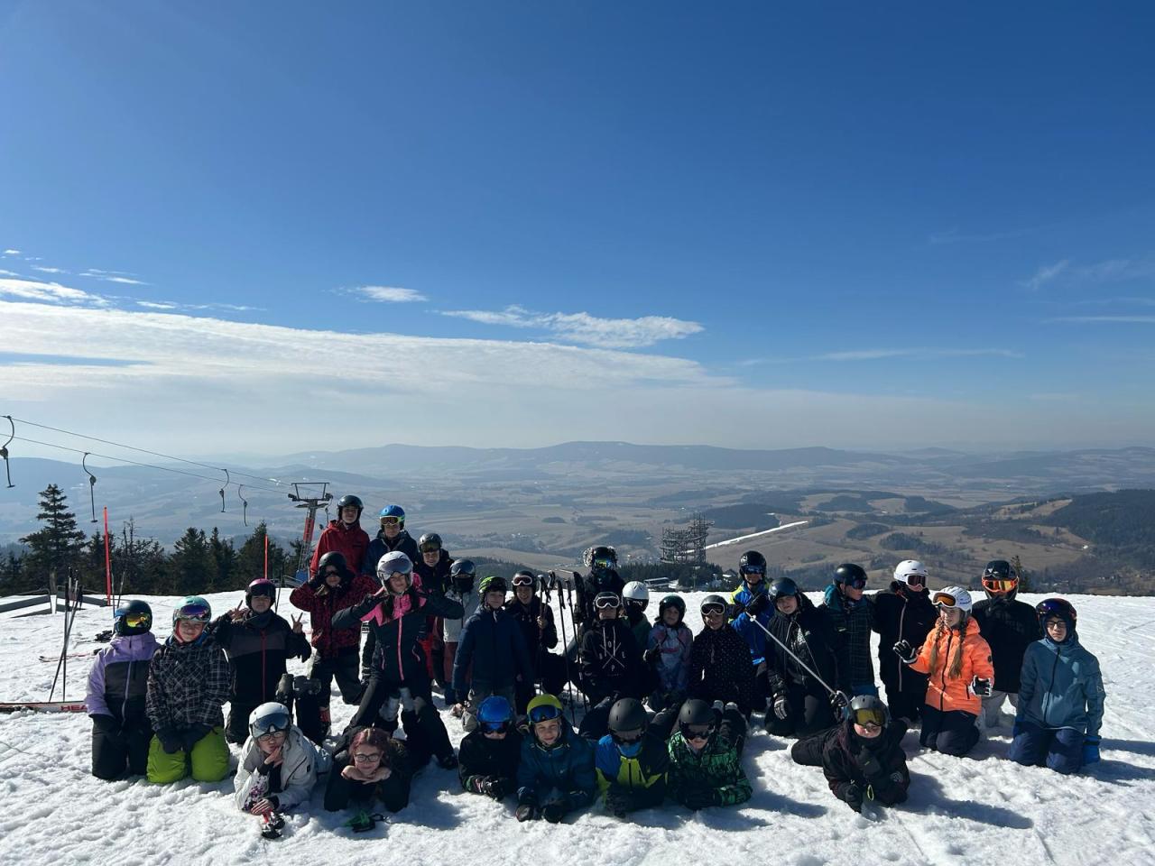 Po příjezdu na chatu Terezka jsme se postupně ubytovali a po poledním klidu jsme vyrazili na svah, kde si instruktoři rozdělili žáky do družstev dle lyžařských dovedností. Chata Terezka je u svahu, tak jsme mohli každé ráno před snídaní z okna zkontrolovat kvalitu sněhu. Od pondělí následoval výcvik na lyžích po družstvech, žáci si vyzkoušeli sedačkovou lanovku a někteří využili své lyžařské dovednosti na náročnějších sjezdovkách.