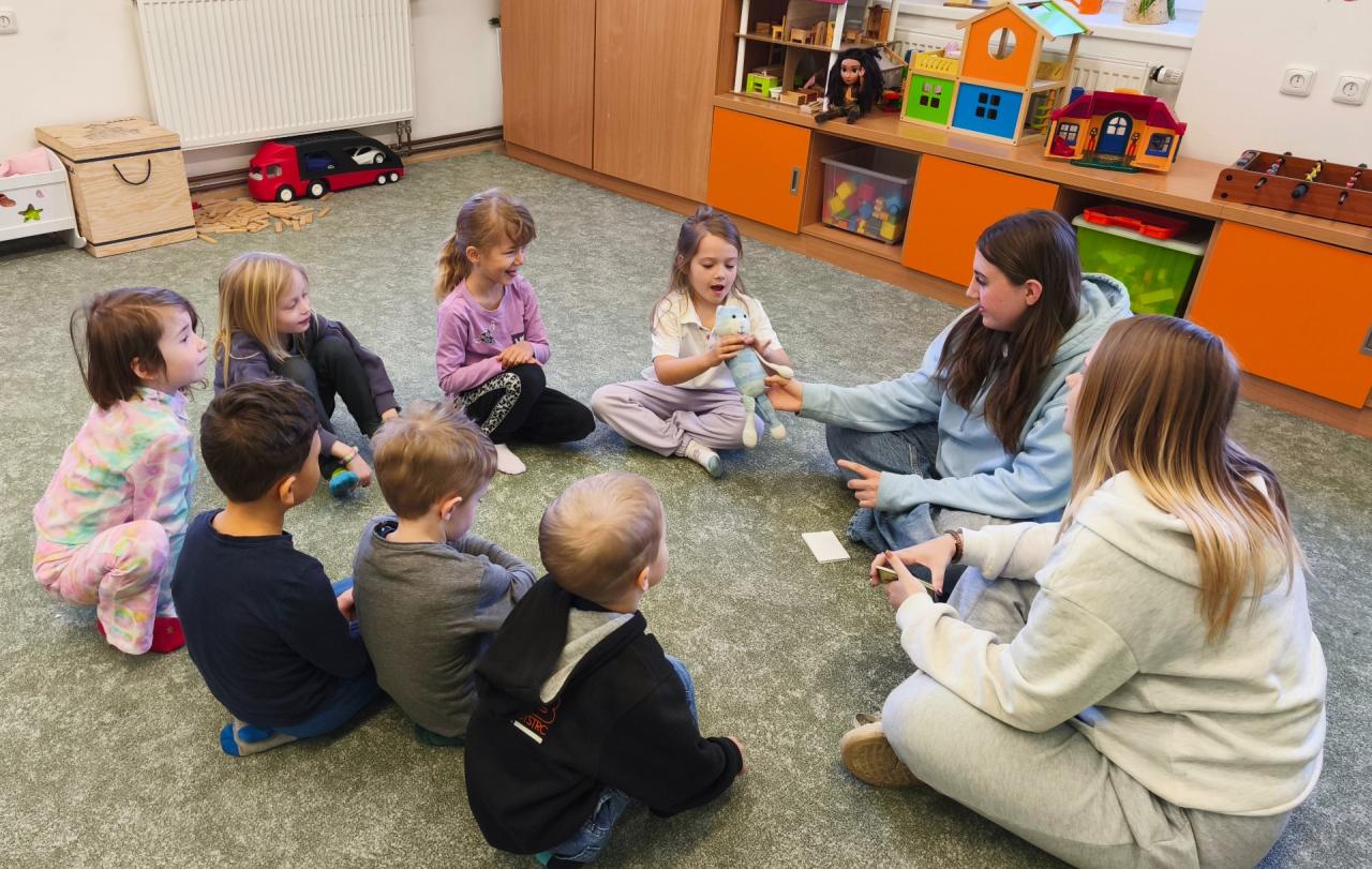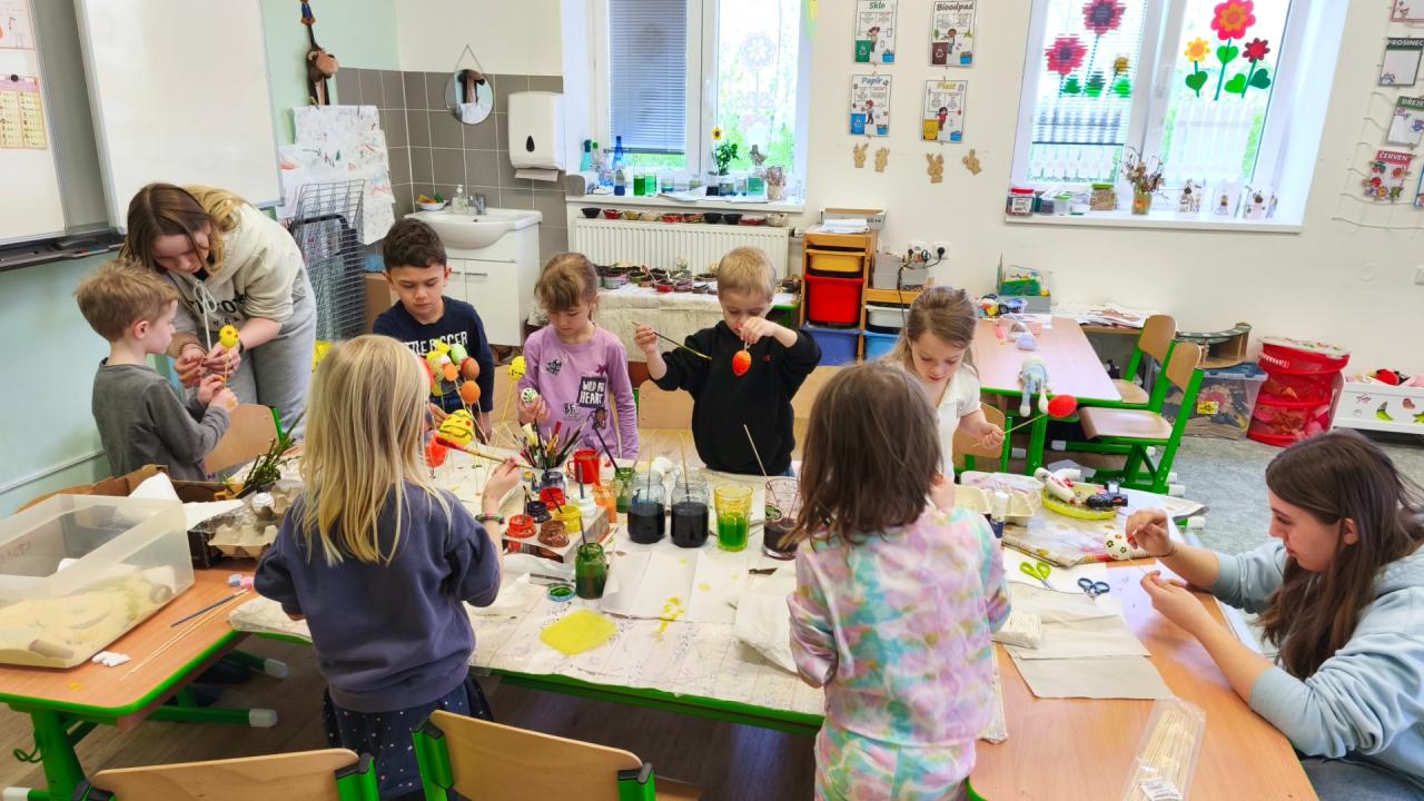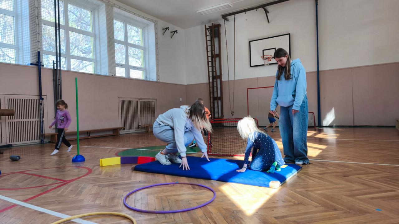 V době přijímacích zkoušek navštívily přípravnou třídu žákyně z devátých tříd a strávily s dětmi dopoledne. Pomáhaly malým kamarádům s učením, počítáním, pojmenováním zvířátek a mláďat a manipulačními činnostmi. Žáci s dětmi vedli rozhovory a připravili spolu pomůcky pro tělesnou výchovu. Společně jsme ve výtvarné výchově barvili vajíčka. Dívky s dětmi komunikovaly empaticky a byly iniciativní. Děti z nulťáčku k nim získaly vztah, vyjadřovaly své prožitky a chtěly, aby se s velkými kamarády mohly opět setkat. Vzájemná výuka byla přínosem nejen pro žáky, ale velkou pomocí i pro učitele. Všem žákům z devátých tříd přejeme mnoho úspěchů v dalším studiu.