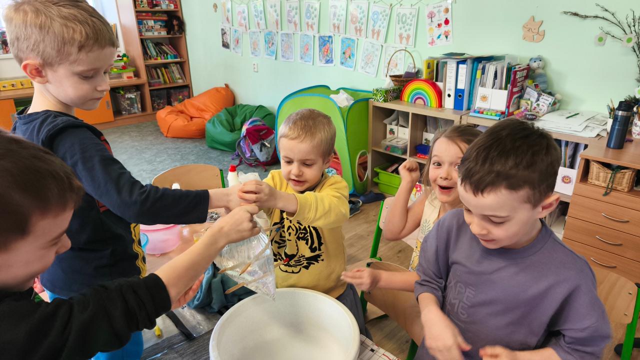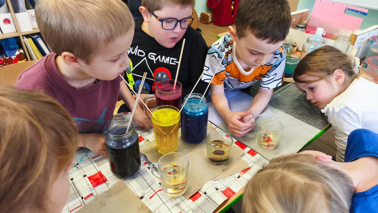 Že je na vodní hladině povrchové napětí a že má voda větší hustotu než olej, vám řekne každé dítě z nulťáčku. K příležitosti Světového dne vody jsme se v tematické části „Od kapičky k oceánu“ dozvěděli o důležitosti vody pro život na Zemi. Děti se seznámily s koloběhem vody, s podnebnými pásmy, skupenstvím vody a její ochranou. Žáci se nejlépe učí prožitkovým učením, a proto jsme zařadili do naší výuky spoustu zajímavých pokusů s vodou. Děti si vyzkoušely, jak funguje povrchové napětí na vodní hladině. Pokud dáme do vody kancelářskou svorku, spadne ke dnu, ale pokud ji opatrně vložíme na vodu, plave, právě díky povrchovému napětí. Dalším pokusem byly plavající rybičky s očkem na vodní hladině. Když děti daly kapku jaru do očka rybky, začala se pohybovat, protože jar zmenšil povrchové napětí vody.
