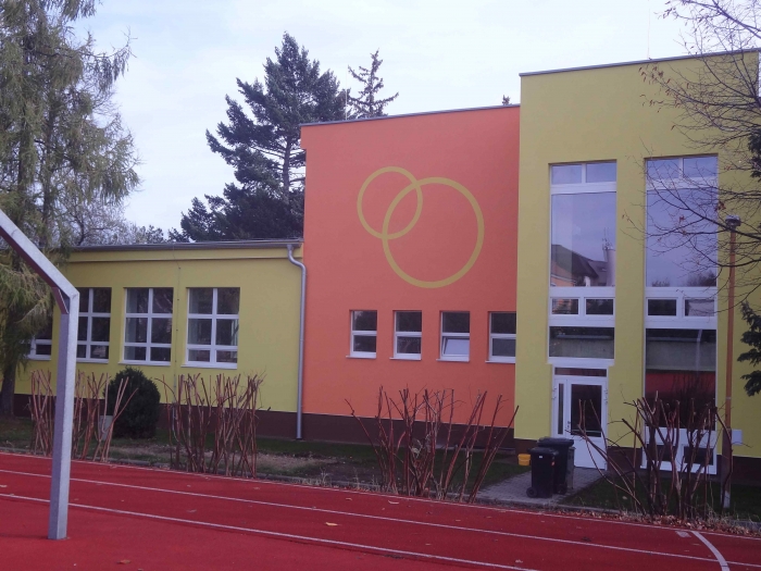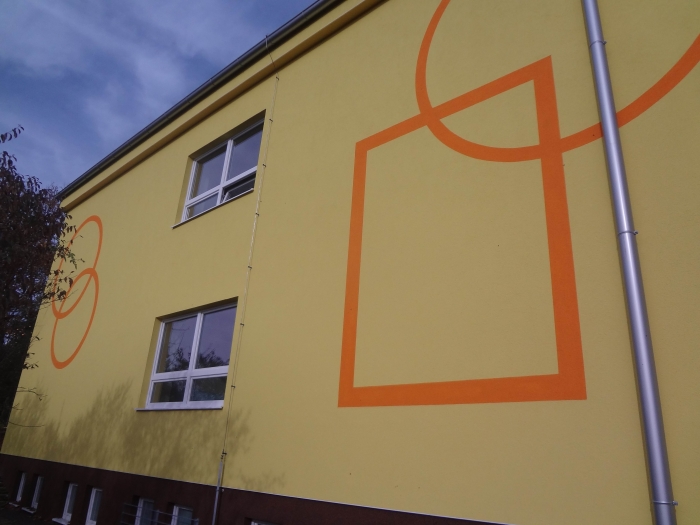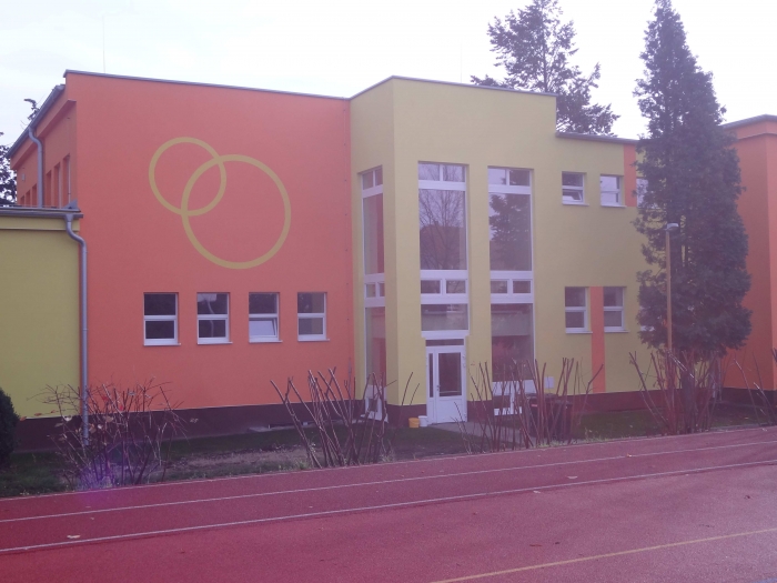 Díky rekonstrukci získala naše škola nový vzhled, který byl realizován podle vítězného grafického návrhu našeho žáka.
