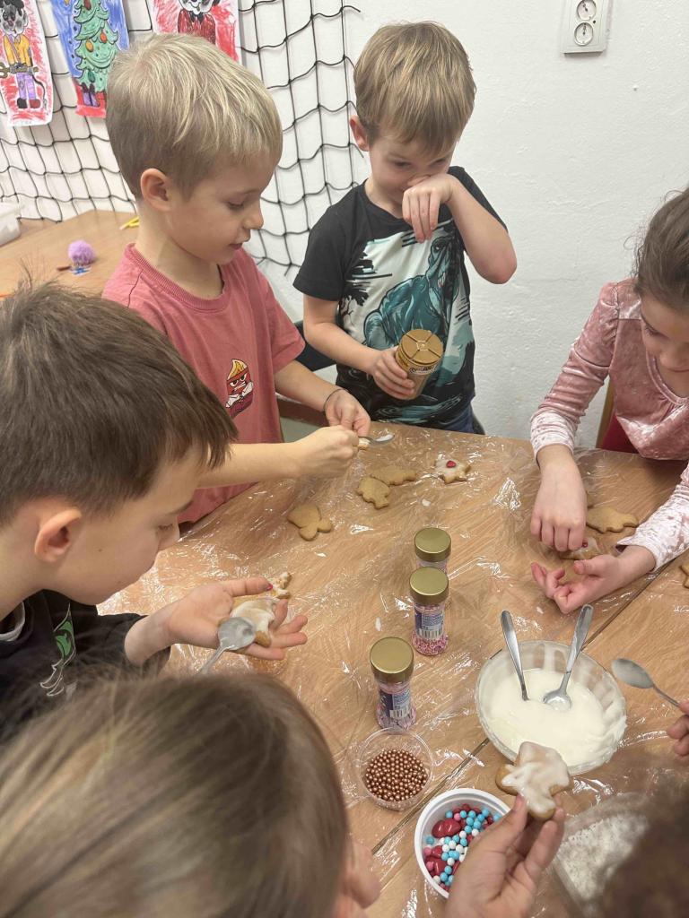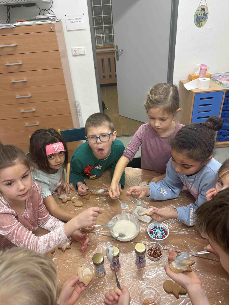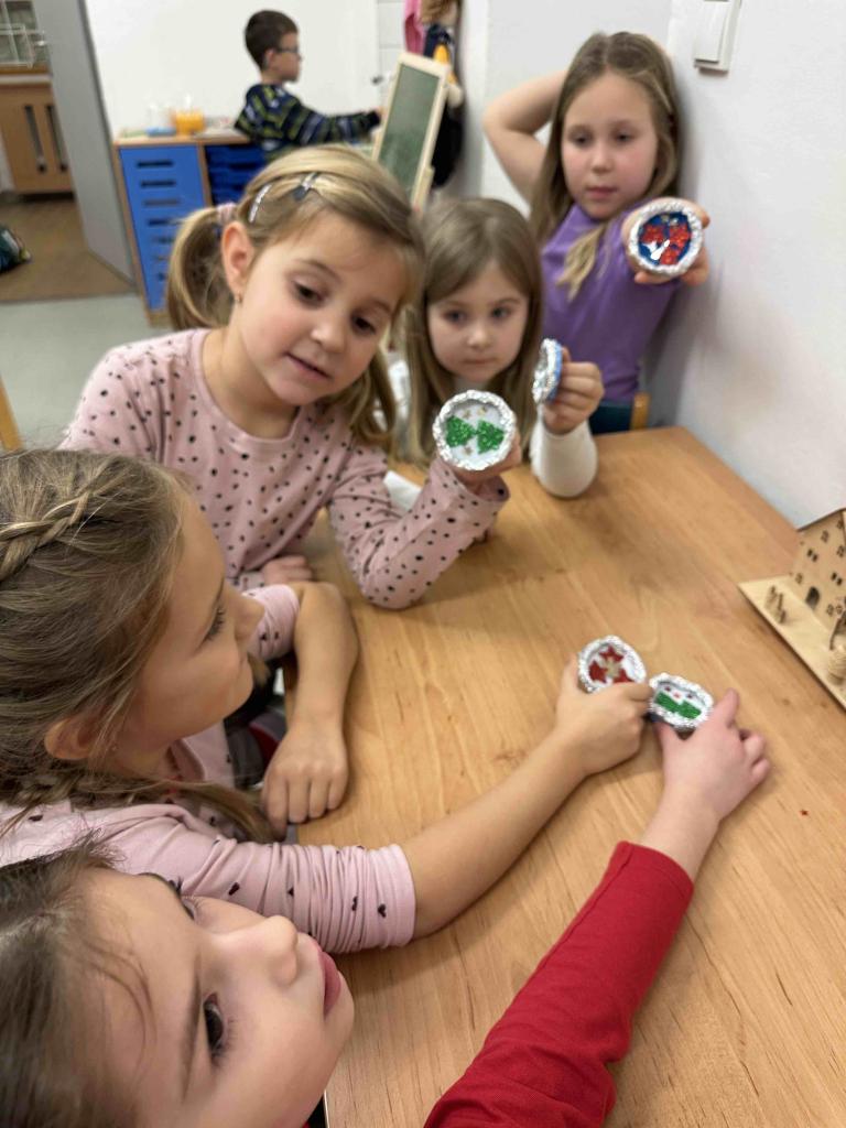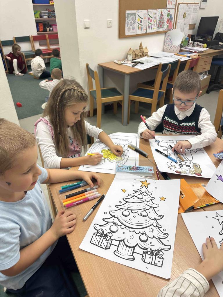 Celé vánoční období jsme si ve školní družině užili v příjemné sváteční atmosféře. S dětmi jsme si povídali o vánočních tradicích a zvycích, jak se Vánoce slaví u nás i v jiných zemích. K doladění vánoční atmosféry patří jistě i vánoční tvoření. Děti si vyrobily sněhové lucerničky, přáníčka a nesmělo chybět ani zdobení perníčků. O vánoční besídce jsme ochutnali výbornou vánočku a vánoční cukroví, pouštěli jsme lodičky z ořechových skořápek, rozkrajovali jablíčka nebo házeli botou. Na závěr si děti připravily představení pro ostatní oddělení školních družin. Zazpívaly koledy, recitovaly vánoční básničky a zahrály krátké veršované vystoupení - holčičky se proměnily ve sněhové vločky a kluci v roztomilé čertíky. Nejvíce se však děti těšily na Ježíška. Ten na ně opravdu nezapomněl a přinesl nové hračky, které udělaly všem velkou radost.