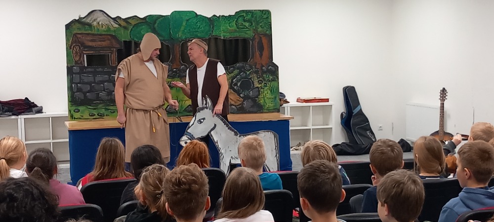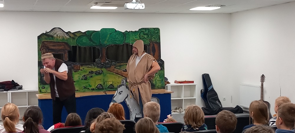 Divadlo může být nejen velmi poučné, ale i velká legrace. O tom jsme se přesvědčili s dětmi při návštěvě představení v odpočinkové místnosti školní haly, kam nás pozvali naši kamarádi z horní školy. Divadélko pro školy p. Víta Troníčka nám připravilo Ezopovy bajky. V těch nám zvířátka ukazují naše lidské slabosti a neřesti, učí nás, jak nenaletět a vzít si poučení z jejich příběhů. A určitě nás také velmi překvapilo, že tyto bajky pan Ezop vytvořil bezmála již před 2500 lety.