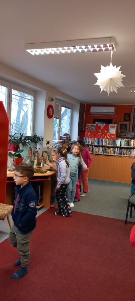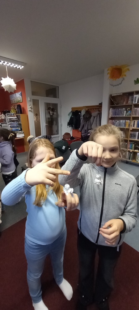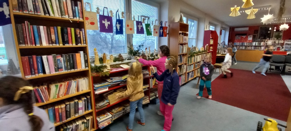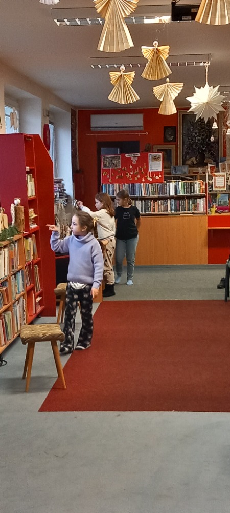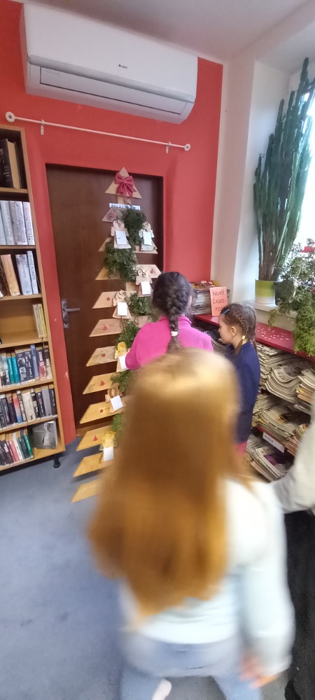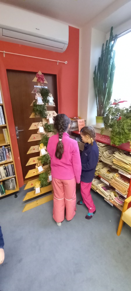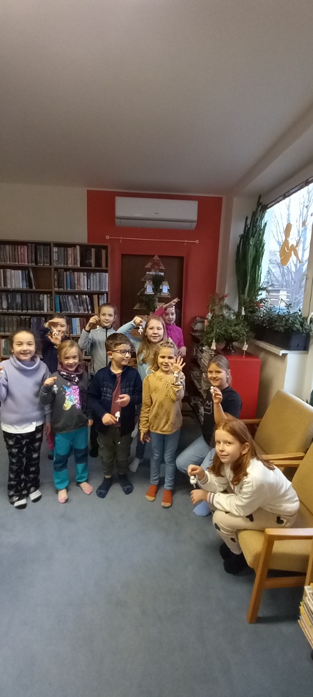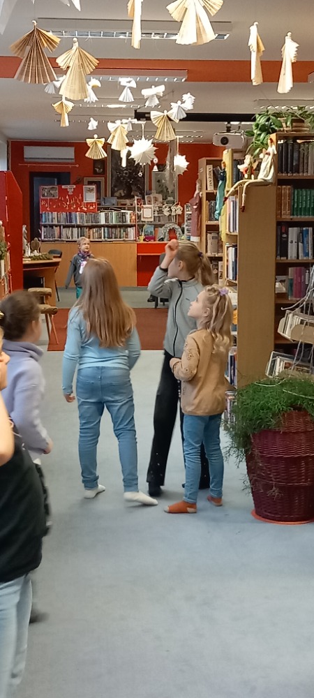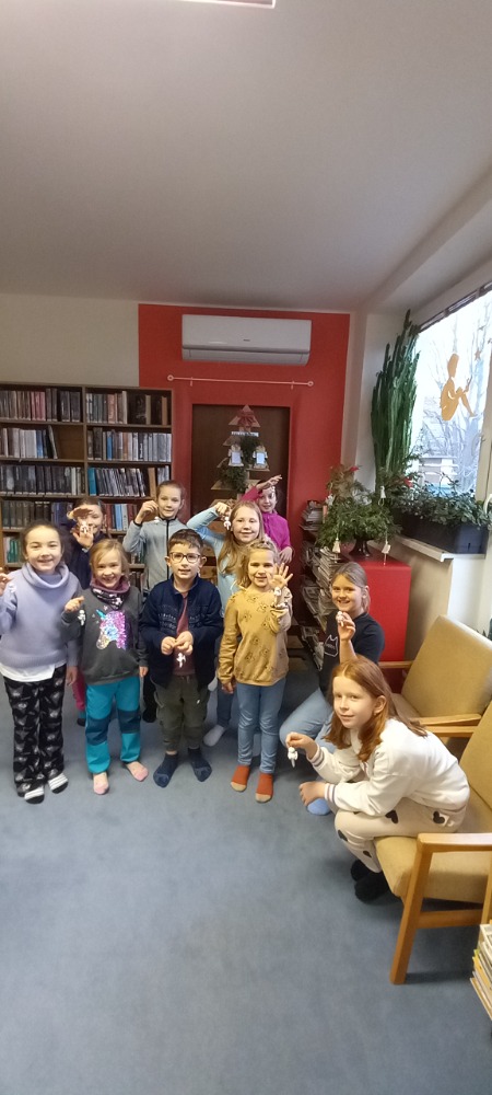 K příjemnému zážitku a vánoční náladě děti dostaly od paní knihovnice malé andílky z těstovin jako odměnu za splněný úkol.