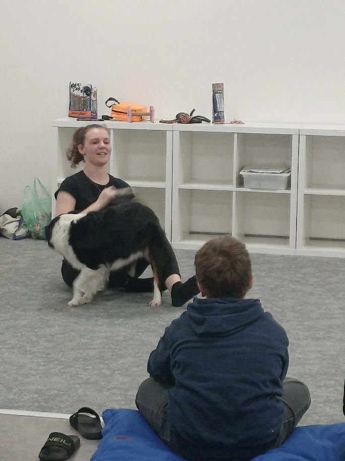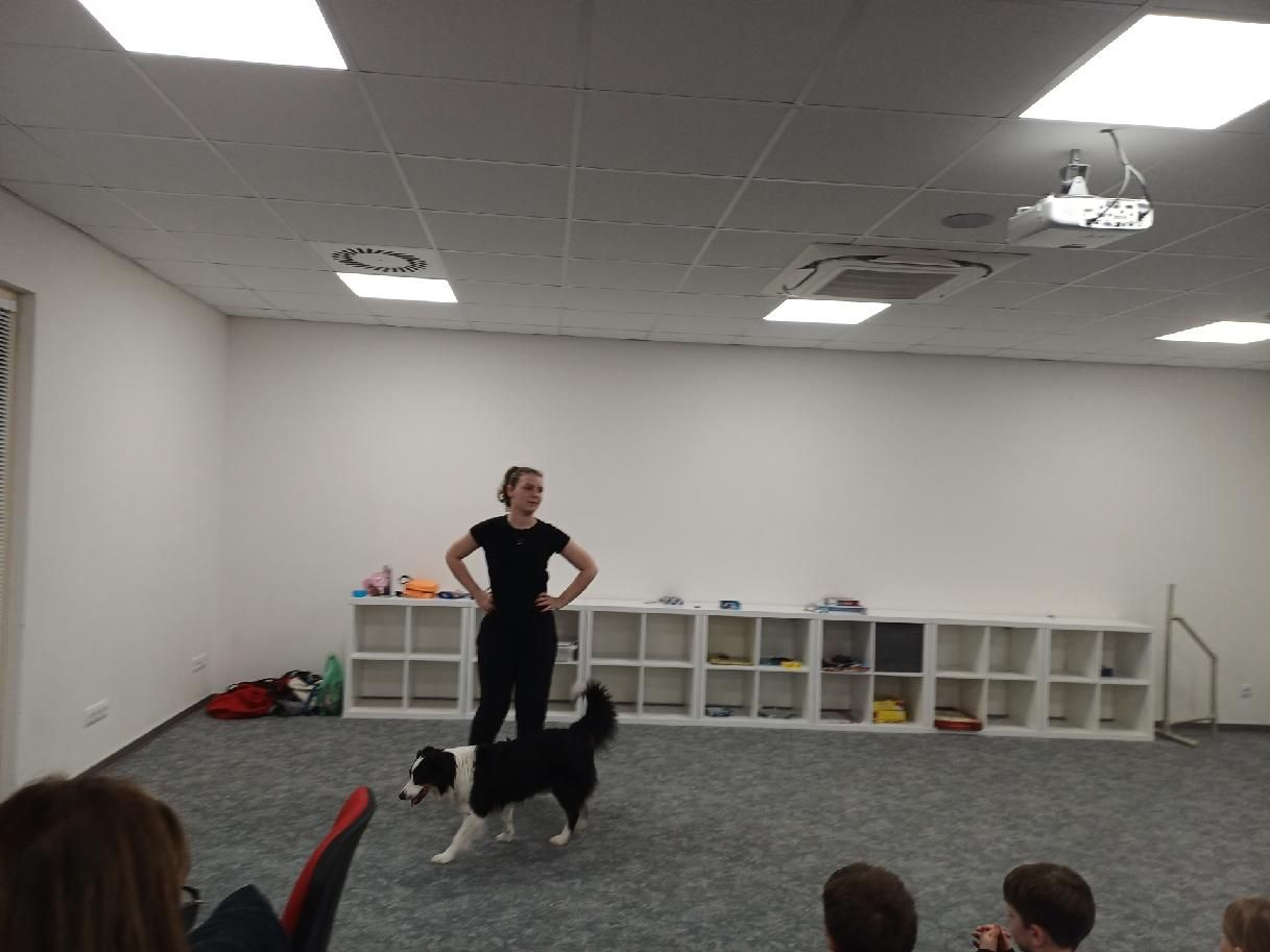 Whitny předvedla svou poslušnost, rychlé reakce na povely i prvky tzv. dog dancingu, tedy tance se psem. Děti obdivovaly její šikovnost, soustředění i radost z pohybu. Paní Weisová nám také vysvětlila, jak probíhá výcvik, kolik času a trpělivosti je potřeba a jak důležité je budovat mezi psem a majitelem vzájemnou důvěru.