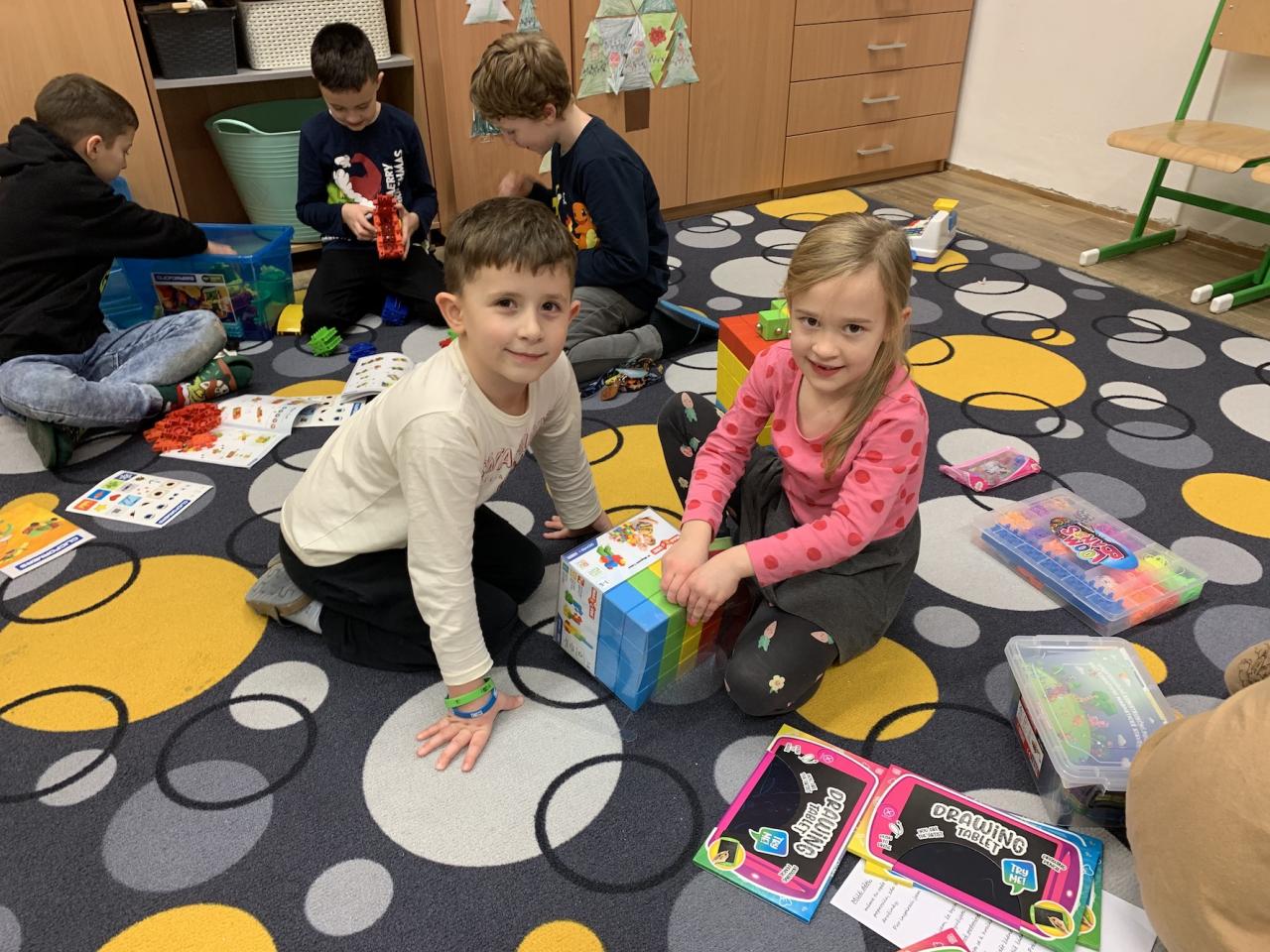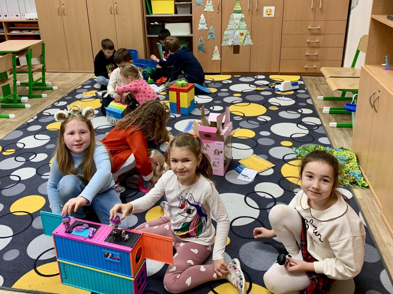 Týden před vánočními prázdninami panovala v VI. oddělení školní družiny klidná a sváteční atmosféra. I když toto oddělení běžně navštěvuje 29 dětí, tentokrát se nás kvůli nemocem sešlo vždy pouze kolem 8. O to více jsme si společně užili příjemné předvánoční chvíle. Družinku nezapomněl navštívit také Ježíšek, který dětem nadělil krásné dárky – nové stavebnice a panenky, které udělaly radost zejména holčičkám.