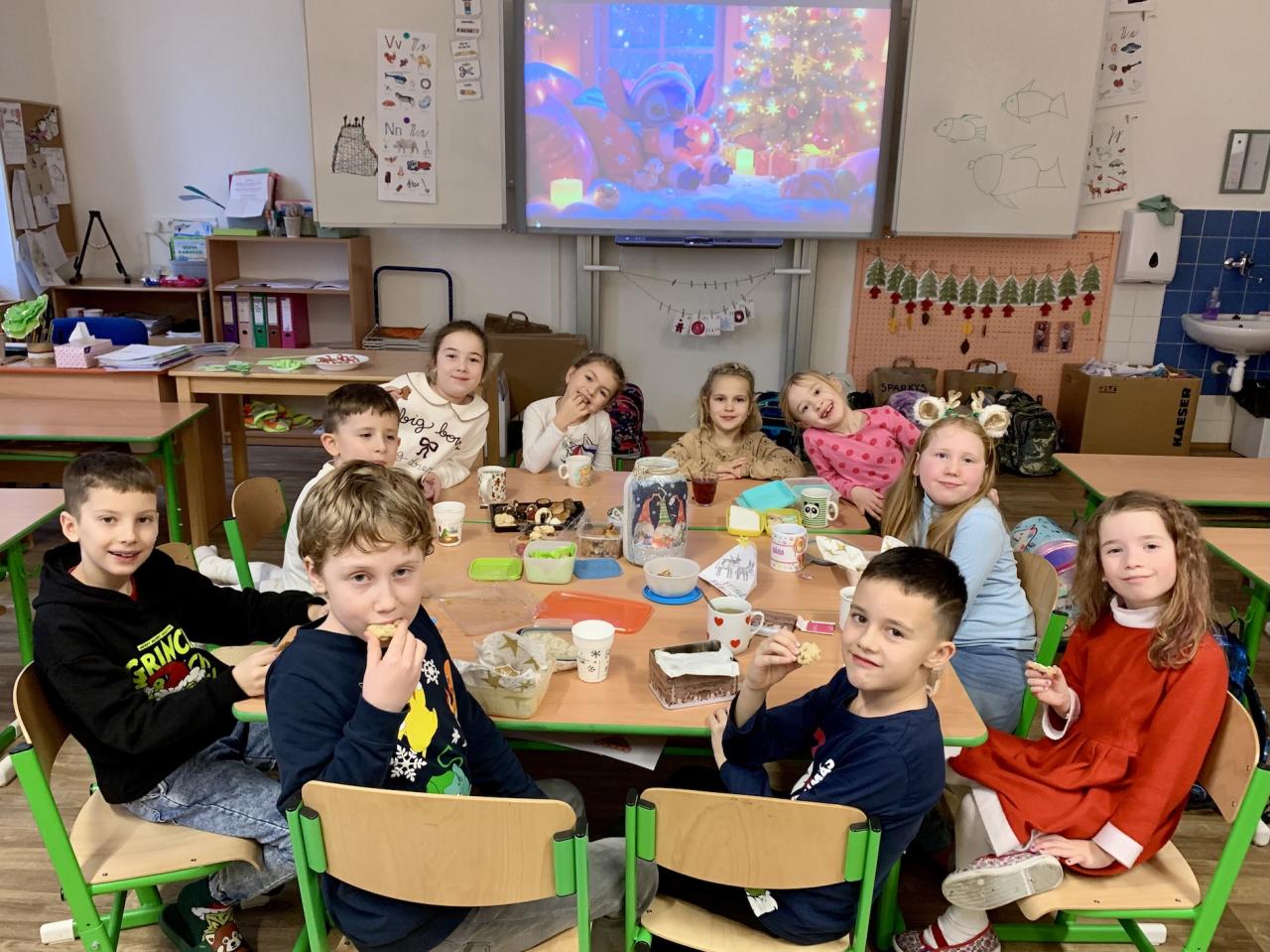 Děti si přinesly své oblíbené hrníčky, čajík a vánoční cukroví. Společně jsme pak seděli u jednoho stolu, povídali si, ochutnávali vánoční dobroty a užívali si klidnou a přátelskou atmosféru. Během setkání jsme si také připomněli vánoční zvyky a tradice a povídali si o tom, co k Vánocům neodmyslitelně patří. Fotografie zachycují tyto milé okamžiky, na které budeme rádi vzpomínat.