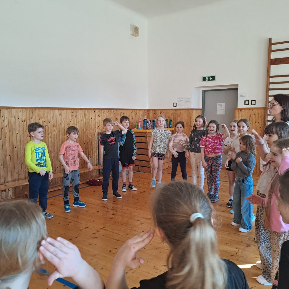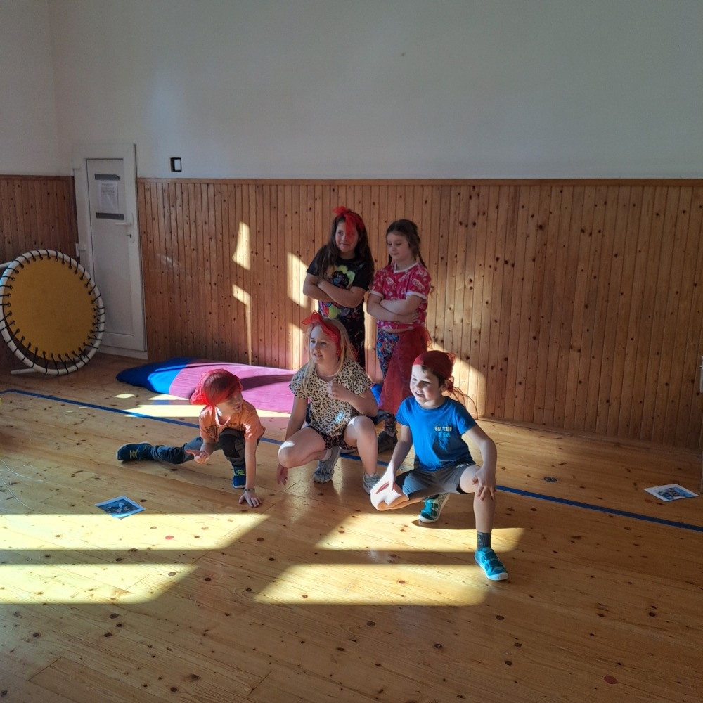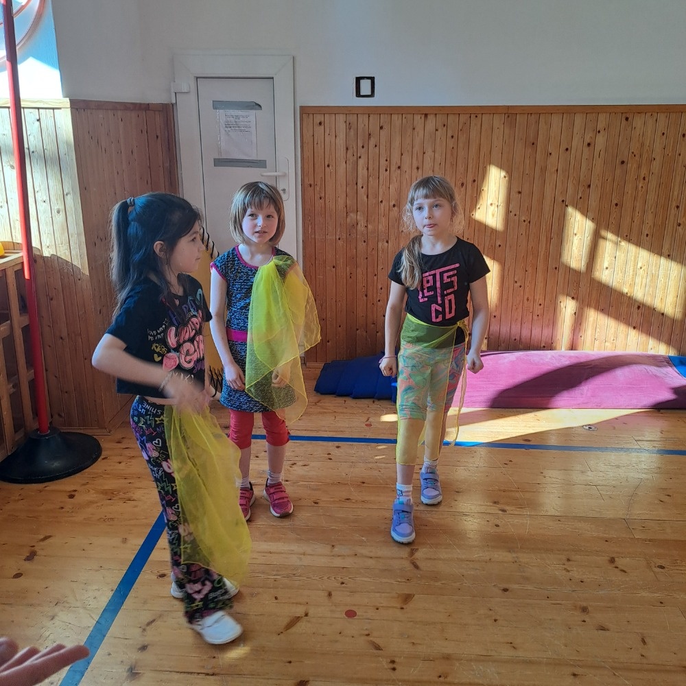 Na závěr programu pak ve skupinkách vymýšlely vlastní choreografii a výsledné taneční vystoupení předvedly ostatním kamarádům. Bylo krásné sledovat jejich nadšení, odvahu a týmovou spolupráci.